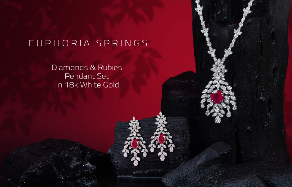Classy Bridal Set with Diamonds & Emerald Droplets set in 18k White Gold